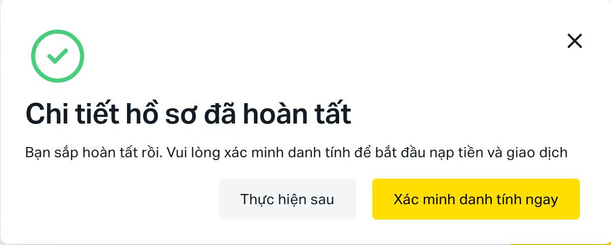 Vì bạn đã hoàn tất việc xác minh Email và Số điện thoại, nên bây giờ chỉ cần bổ sung thông tin hồ sơ để hoàn tất quá trình xác minh.